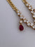 Elegantes Collier aus 750/18K Gelbgold mit funkelndem Diamant und leuchtendem Rubin. Das zeitlose Design verbindet klassische Handwerkskunst mit edlen Materialien und schafft ein Statement-Piece für besondere Anlässe. Die harmonische Kombination aus glänzendem Gold und den kostbaren Steinen verleiht diesem Schmuckstück eine raffinierte Eleganz und Wertbeständigkeit.
