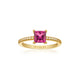 Ring aus 925 Sterlingsilber,18 Karat vergoldet, mit polierter Oberfläche und handbesetzt mit facettengeschliffenen blauen Zirkonias.