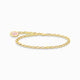 Eine runde, gravierbare THOMAS SABO Charm Club Charmista Coin mit schimmernder, weißer Kaltemaille schmückt das Ende des vergoldeten Gliederarmbands. Es ist in den Längen 15, 17, und 19 cm erhältlich.