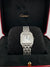 Elegante Panthère de Cartier im mittleren Modell mit Quarzwerk. Die Uhr überzeugt durch ihr klassisches, zeitloses Design und wurde zusätzlich mit einem SI / Farbe: H Vollbesatz veredelt, was ihr eine besonders luxuriöse Ausstrahlung verleiht.