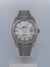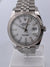 Diese Uhr der Marke Rolex und der Datejust-Kollektion trägt die Referenznummer 126334. Diese Uhr ist mit einem Uhrwerk mit automatischem Aufzug ausgestattet. Sie hat außerdem ein Stahlgehäuse mit einem Durchmesser von 41 mm, ein weißes Zifferblatt und wird von einem Stahlarmband begleitet.