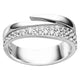 Silberring mit verspieltem Steinbesatz / 10 asymmetrisch angeordnete, weiße Zirkonias in unterschiedlichen Größen und Formen schmücken den verspielten Ring aus rhodiniertem Sterlingsilber. Ein passender Anhänger und Ohrstecker komplettieren das Set.